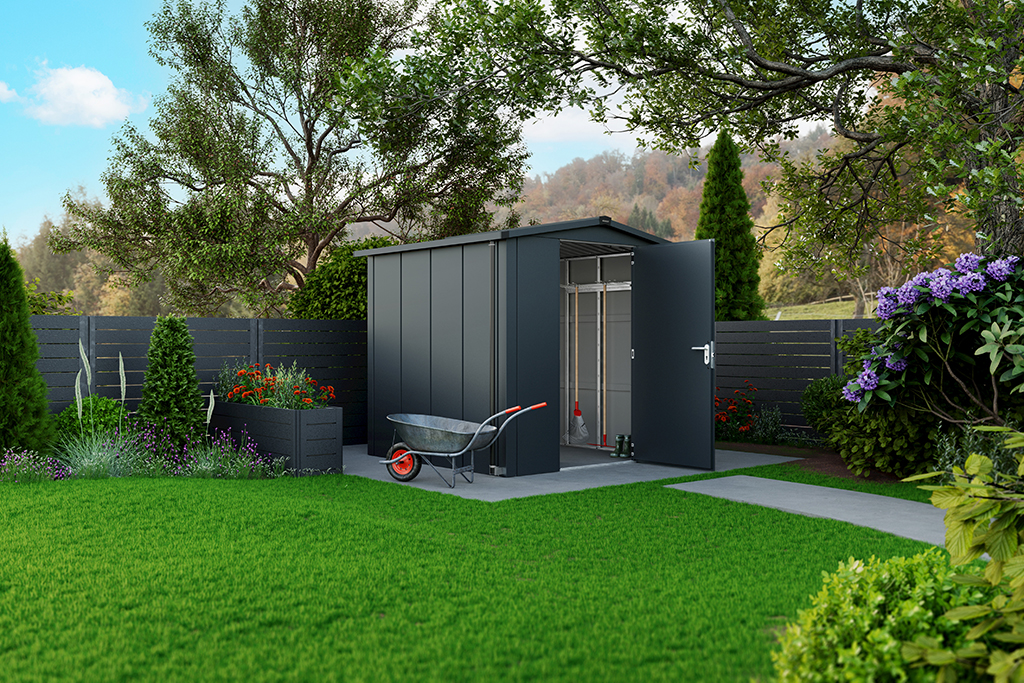 A Juno kerti eszköztárolóházak tűzihorganyzott acéllemezből készülnek, kétoldali coil-coating bevonattal, amely hatékony védelmet biztosít az UV-sugárzás, a nedvesség és a penészesedés ellen. Ennek köszönhetően a tárolók hosszú éveken át megőrzik minőségüket és esztétikus megjelenésüket, miközben nem igényelnek különösebb karbantartást.