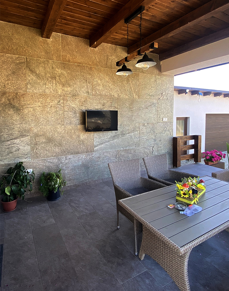 - Érintésre csábító textúra. Szemben a mesterséges művi utánzatokkal vagy a hagyományos vakolatokkal, a Slaterock lapok izgalmas, strukturált felülete utánozhatatlan fény-árnyék játékot hoz létre, amely páratlan térélményt és mélységet biztosít.