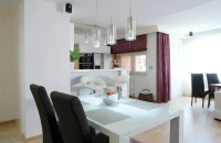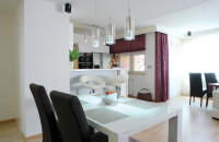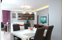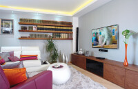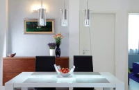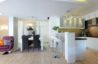 Az eredetileg kényelmetlenül tagolt, sötét helyiségekből tágas, világos közösségi teret alkottunk, közvetlenül innen nyílnak a hálószobák. A lakásátalakítás nem csupán a tervezésben jelentett feladatot a számomra, hiszen a kiviteli munkálatokat is figyelemmel kísértem. A felújítás minden szakaszát átfogó munka eredménye ez a rendezett, szép otthon, ahol a család apraja-nagyja kényelemre, harmóniára talál. |
