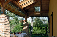 Nagy öröm volt, amikor a háromgyermekes család rátalált a Balaton- felvidék lankás domboldalán arra a csodálatos telekre, ahol tucatnyi fenyőfa és bokor zöldellt. Elhatározták, hogy minden egyes fát átültetnek (még a nagyokat is), hogy az építkezéskor egyet se veszítsenek el, hiszen mindez meghatározza jövendőbeli otthonuk környezetét. Azt a hangulatot, amelyet egy frissen telepített kert csak évtizedek múltán tud adni. Az építkezést hosszas tervezés előzte meg, és meghitt beszélgetések Kujbus Marianna építésszel. Számtalan könyvet és magazint átlapoztak, hogy ötleteket gyűjtsenek. Fontos volt számukra, hogy a ház egyszintes és időtálló legyen, minden hivalkodástól mentes, és tökéletesen belesimuljon a tájba. Az utca felől minél kisebbnek tűnjön, szinte bújjon meg a bokrok és fák ölelésében. Környezetbarát szemléletüket igyekeztek úgy megmutatni, hogy megvásárolták egy, a közelben lebontott százéves paplak gerendáit és tégláit, hogy azok otthonuk stílusának meghatározói legyenek. A bontott téglákat külső burkolásra használták fel, az enyészettől megmentett gerendák pedig a házbelső látványos elemeivé váltak.