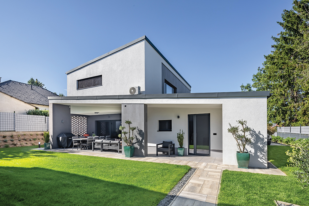 Vendéglátóink régi vágya vált valóra, amikor átvehették Veszprém egy elegáns negyedében épült 205 négyzetméteres otthonuk kulcsait. A minimalista stílusú ház a család minden igényének megfelel, ráadásul a panoráma és a fenyőkkel beültetett kert is lenyűgöző. A belső terek kialakítására Halász Gabi lakberendezőt kérték fel, aki már az első tervek megalkotásakor tökéletesen eltalálta a család ízlését, így szabad kezet kapott, annyit kívánsággal, hogy a letisztult, modern térben a szürke és a fa anyag hangsúlyosan jelenjen meg.