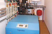 A Helios hőcserélős szellőztető berendezését padló-, illetve mennyezetfűtéssel egészítették ki, utóbbi passzív hűtésre is képes. Ezt a két, 100 méteres talajszondával működő Wapor Line hőszivattyú szolgálja ki, amely a fűtés hulladékhőjéből állítja elő a háztartási meleg vizet. Az idei extrém hideg télen 24 Celsiusfokot tartottak az épületben, így egy év fűtési és hűtési költsége 110 000 forint volt. A számítások szerint, ha az épületet standard 21 Celsius-fokon üzemeltetnék, akkor a fűtésköltség csupán évi 70-80000 forintot tenne ki.
