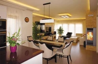 Mintha csak Toscanában járnánk: igazi mediterrán hangulat kívül, minden igényt kielégítő, rendkívül elegáns belső terek, gyönyörűen ápolt kert. Ráadásul a rezsi is legfeljebb déli szomszédainkéval vetekedhet, hiszen ennek a bruttó kétszáznyolcvan négyzetméteres családi háznak – amely a tulajdonosok szerint köréjük épült – a fűtésszámlája a legkeményebb télben sem haladta meg a havi kilencezer forintot! És gondolták volna, hogy ez a ház a nagy magyar Alföld peremén, Nagykáta egy eldugott kis utcájában áll?