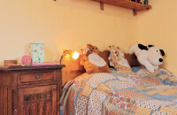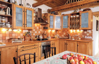 A fa, a természetes anyagok kaptak főszerepet ebben a házban, ahogy a régmúltban is, és ebben következetes maradt a ma már három leánygyermeket nevelő család. Az öt méter széles, tizennyolc méter hosszú (a főfalak 50, a közfalak 30 centiméter vastagok) parasztház az erdők hangulatát idézi; fa burkolatát tölgyfából hasította a szomszéd falu mestere, de a hidegburkolat kiválasztásánál is természetes hatásra törekedtek. A kerámia ugyan mediterrán hangulatú, de tökéletesen illeszkedik az ódon falak közé. A szűkös és nem bővíthető négyzetmétereket belülről tágították. Az első szoba mennyezetének eltávolításával határtalan szabadság érzete tölti el az embert a gyümölcsökkel teli asztal mellett ülve.