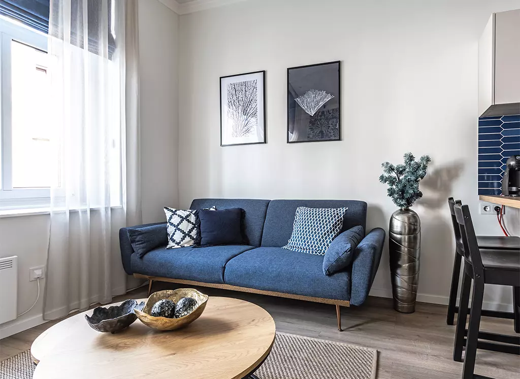 A 25 négyzetméteres kis apartmanlakások egy 19. századi polgári ház egy-egy tágas, utcafronti szobájából születtek. Az egész ház teljes gépészeti-építészeti korszerűsítésen esett át, hanggátló falazattal az egyes lakások között, így ezekre az időtálló, stabil alapokra terveztem 3 trendi, kompakt, újrahangolt életteret, amiből a két kisebbet mutatjuk be.