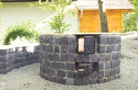 A kert hasznos szeglete a sütögető körüli rész. Különböző stílusok léteznek, de még mindig lehet újat mutatni: például ha valaki szerencsés, és sikerül hozzájutnia a már nem bányászott bazalt nagykockakőhöz (útbontásoknál akad még). Különleges színe, formája miatt kevesen merik alkalmazni, pedig óvatos anyagválasztással a környezetében olyan BBQ helyszín válik belőle, aminek nincs másolata a vidéken! Használható járófelület mellett magához a tűzhelyhez, a kiülőkhöz, a pulthoz is.