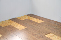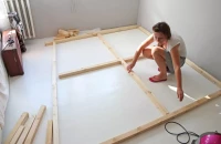 A dobogó borítását legalább 18 milliméteres OSB lapból szabjuk be. Ezután a legegyszerűbb és legolcsóbb, ha laminált padlóval borítjuk a tetejét, de hajópadlót is lefektethetünk. Az oldalakat fenyőlécből készítsük el.