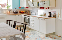 Wekerle kisvárosi hangulatával sem nagyon akartunk szakítani, ezért az anyaghasználatban maradtunk a hagyományos burkolatoknál: fa, cementlap. Ami igazán jellemzi a lakást, az az, hogy gondolkodtunk, kutattunk, utánajártunk dolgoknak, időt nem kímélve, de pénztárcát igen. Szeretjük a végeredményt.