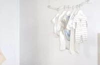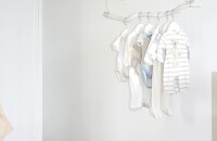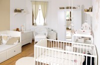 Uniszex babaszoba?! A választás a bézs és fehér alapszínekre esett, amihez később akár fiús, akár lányos színek is ízlésesen társíthatók. Mivel Viki nem kedveli a hagyományos gyerekbútorokat, amiket néhány év elteltével kinő a gyermek, ezért hosszú távra rendezkedtünk be. Nagy kinyitható ágy és háromajtós szekrény, valamint néhány felújított régi darab került a szobába. A műanyag játéktárolók helyett pedig fa ládák és gyümölcsösrekeszek újragondolása mellett döntöttünk.
