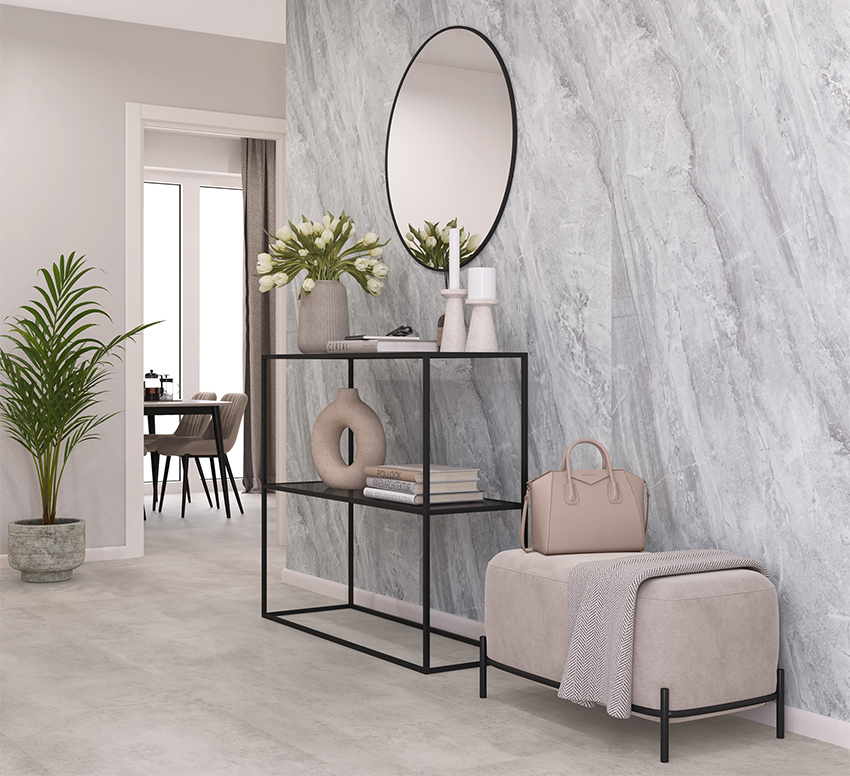 Külön érdekesség, hogy az SPC burkolatok nemcsak padlón, hanem falon is alkalmazhatók. Így a nappaliban, a fürdőben vagy akár a dolgozószobában teljes harmóniát teremthetünk: ugyanaz a felület folytatódhat vízszintesen és függőlegesen, egységes, letisztult enteriőrt hozva létre.
