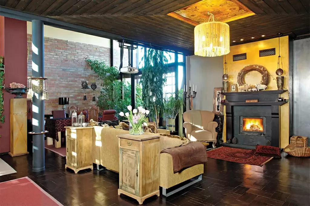 Gyakorlott mozdulatok, néhány perc, és vörös lángnyelvek kóstolgatják a tűzifát. A lakás tökéletes fókuszpontja az aranyfestéssel és finom ezüstös veretekkel rangjára emelt éjfekete kandalló. Ágnes Photoshoppal, aztán a falra felfestve igyekezett a mesterembereket meggyőzni arról, hogy nem túlzás ekkora kandallót építeni: egyszerűen megkívánja a tér. Rajta fő helyen a szárnyasmalac-gyűjtemény, a tárgyhumor darabjai. Mellette egy tekintélyes falrészre vaslemez került, hátha berozsdásodik, de egyelőre nem adja meg magát az időnek.