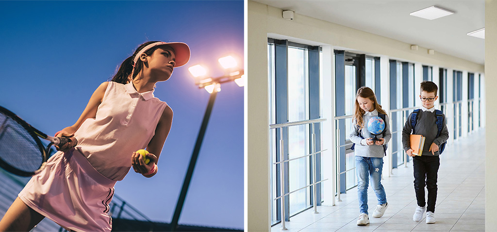 Ezek a lámpatestek sportpályákat és csarnokokat is képes bevilágítani. Kifejezetten iskolatermek, irodák, orvosi rendelők bevilágítására tervezték, mivel minimalizálják a tükröződést, így nyugtatva a szemet. CCT típusokkal igazodva az igényekhez, színhőmérséklet, a kapcsolható teljesítményszintek is rugalmasan választhatóak, ezáltal egy igazi modern választás tud lenni az irodavilágítás kialakításakor.