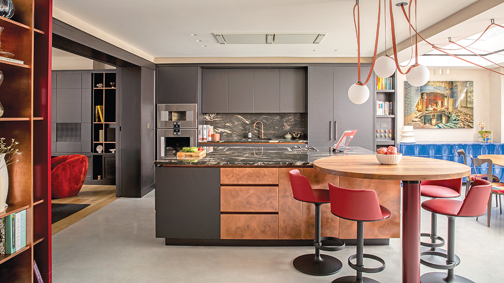 Ez a lenyűgöző, hatszobás, többszintes londoni családi ház egy aprólékos, hároméves együttműködés eredménye, amely során a tervezőcsapat és a megrendelők ismét összefogtak, hogy a nagycsalád számára egy minden szempontból ideális otthont hozzanak létre. A Chris Dyson Architects által vezetett átalakítás során újragondolták a teljes alagsort, új tetőtéri ablakok beépítésére, valamint egy jelentős hátsó bővítésre is sor került. Az eredmény egy modern, mégis karakteres otthon lett, ahol a kortárs elemek harmonikusan illeszkednek az épület eredeti, történelmi bájához. Itt kapott helyet a tágas étkező, a kifinomult, mégis meghitt hangulatú nappali és a látványos, új konyha, kiegészítve egy színes étkezőrésszel.