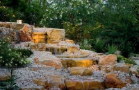 Ha a kertben a terepadottságok lehetővé teszik, a szintkülönbségeket kihasználva könnyen létrehozhatunk egy kellemes vízesést, amelyet indíthatunk akár egy forráskővel, majd a domboldalba beágyazott sziklák között leszaladó víz eltűnhet akár a domb tövénél lévő kövek között – amely biztonságos megoldás, ha kisgyermekek is vannak –, vagy csatlakozhat egy kerti tó vízfelületébe is.